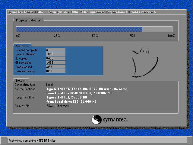 把光盘下GHOST目录下的Win10.GHO文件复制到硬盘,然后重启设置光盘启动,再选择手动运行GHOST11,选择之前复制出来的GHO进行恢复!