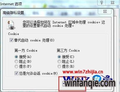 win7系统之家企业版使用浏览器提示cookie功能被禁用怎么解决