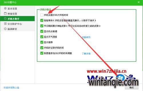 5、接着我们把开机后提示本次开机时间的勾去掉,然后点确认即可。