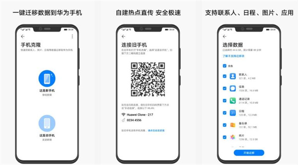 手机克隆app苹果版无需连接外部热点,而是自建热点使用局域网进行传输,在旧手机中打开软件,选择需要传输的数据后,使用新手机扫码旧手机生成的二维码一键连接热点,即可开始传输,传输速度最快可达10M/S,不花一分钱快速完成手机搬家。