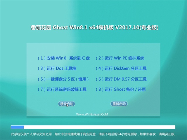 本系统仅用于进行演示基于万能GHOST的快速部署技术,供装机维护技术人员参考,我们不承担任何技术及版权问题,且不对任何资源负法律责任。请勿将本系统用于商业用途,如果您觉得满意,请购买正版!!
