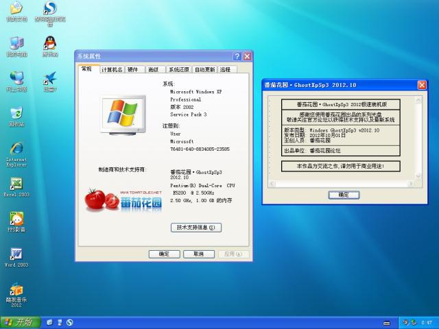 欢迎使用 番茄花园 Ghost XP SP3 2012.10月 国庆中秋海量驱动版